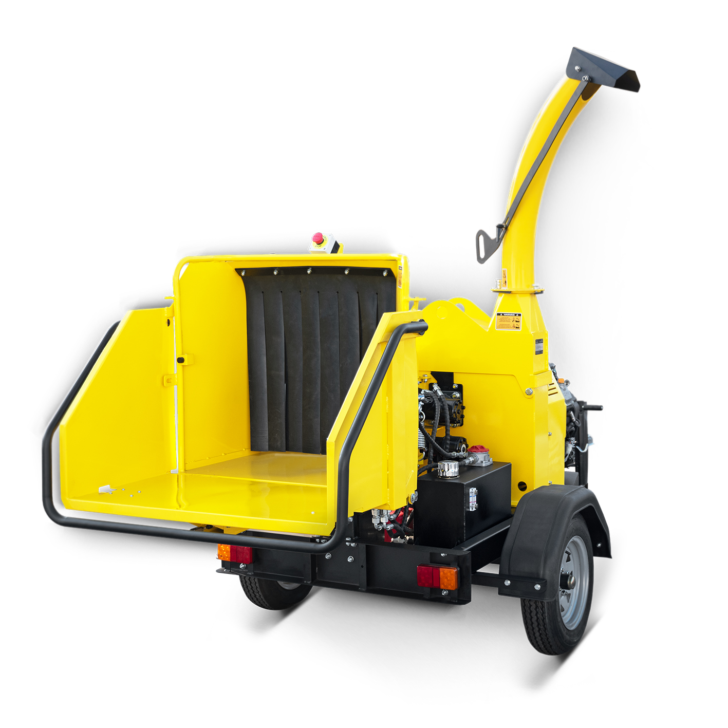 - Velký násypný trychtýř s bezpečnostním vypínačem a vestavěnou skříňkou na nářadí
