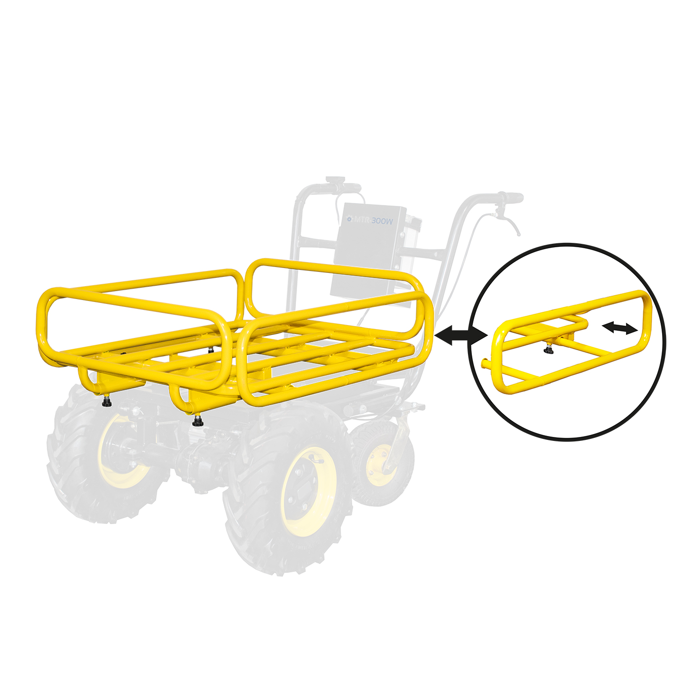 Elektrický kolečkový vozík MTR-300W je ideální řešení pro všechny, kdo chtějí efektivně přepravovat těžké náklady. S výkonným elektromotorem, dlouhotrvající lithium-iontovou baterií, velkými poháněnými koly a sklápěcí korbou je tento vozík spolehlivým a efektivním pomocníkem v různých pracovních prostředích.