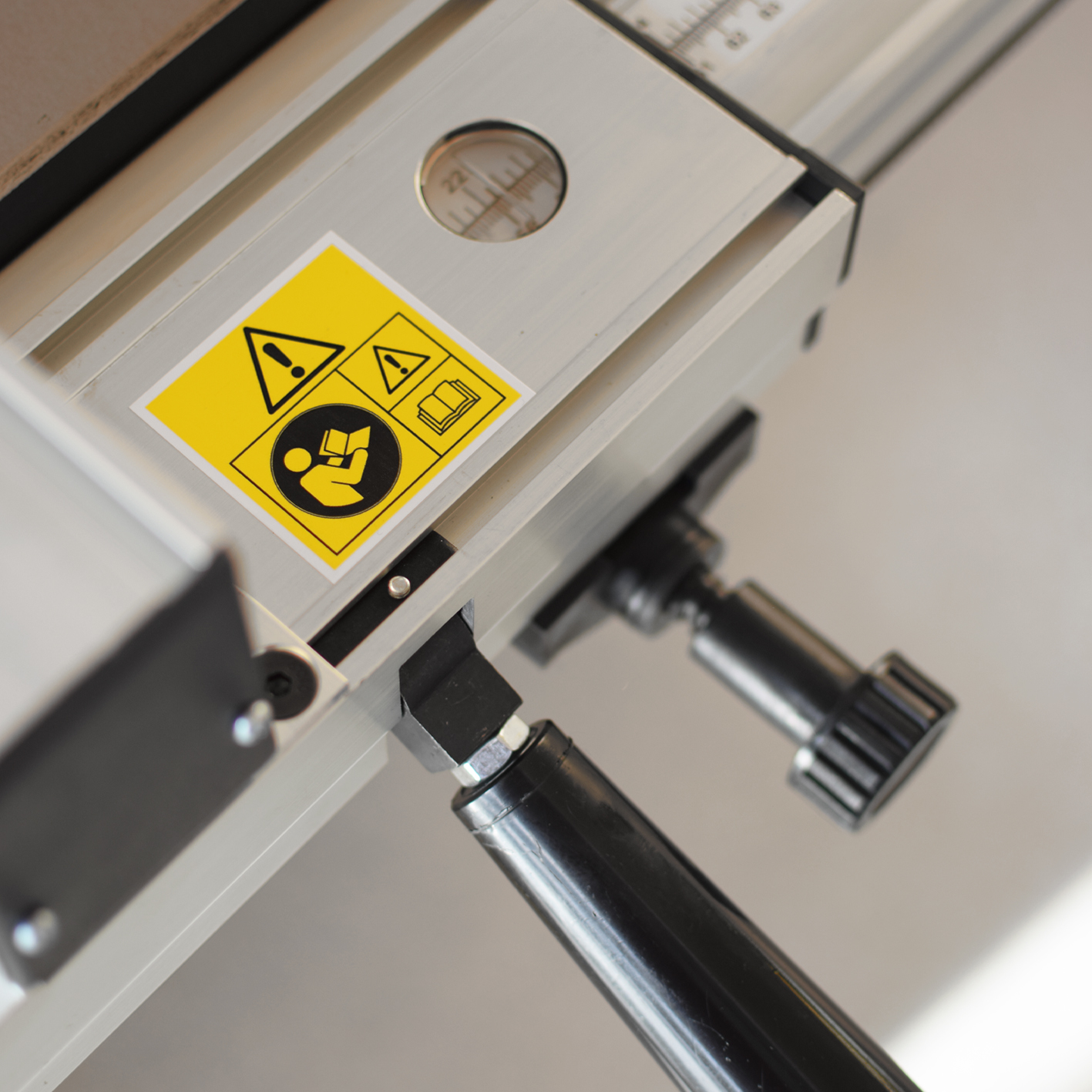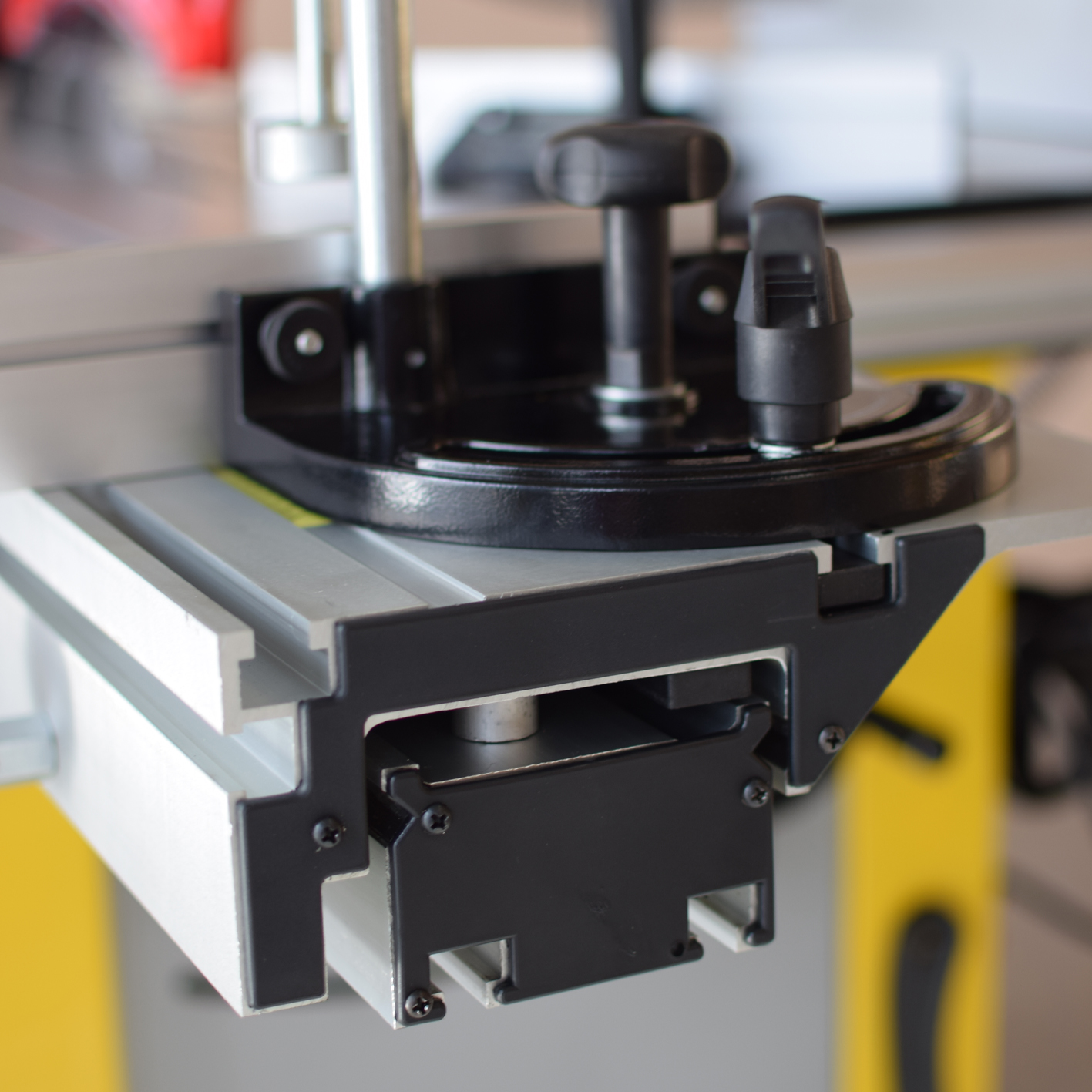 - Příčný a úhlový doraz s přítlačným prvkem pro formátovací posuvný stůl