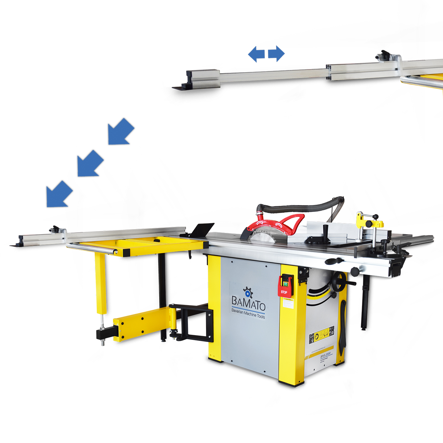 - Rozšíření stolu pro šířku řezu až 1220 mm na paralelním dorazu