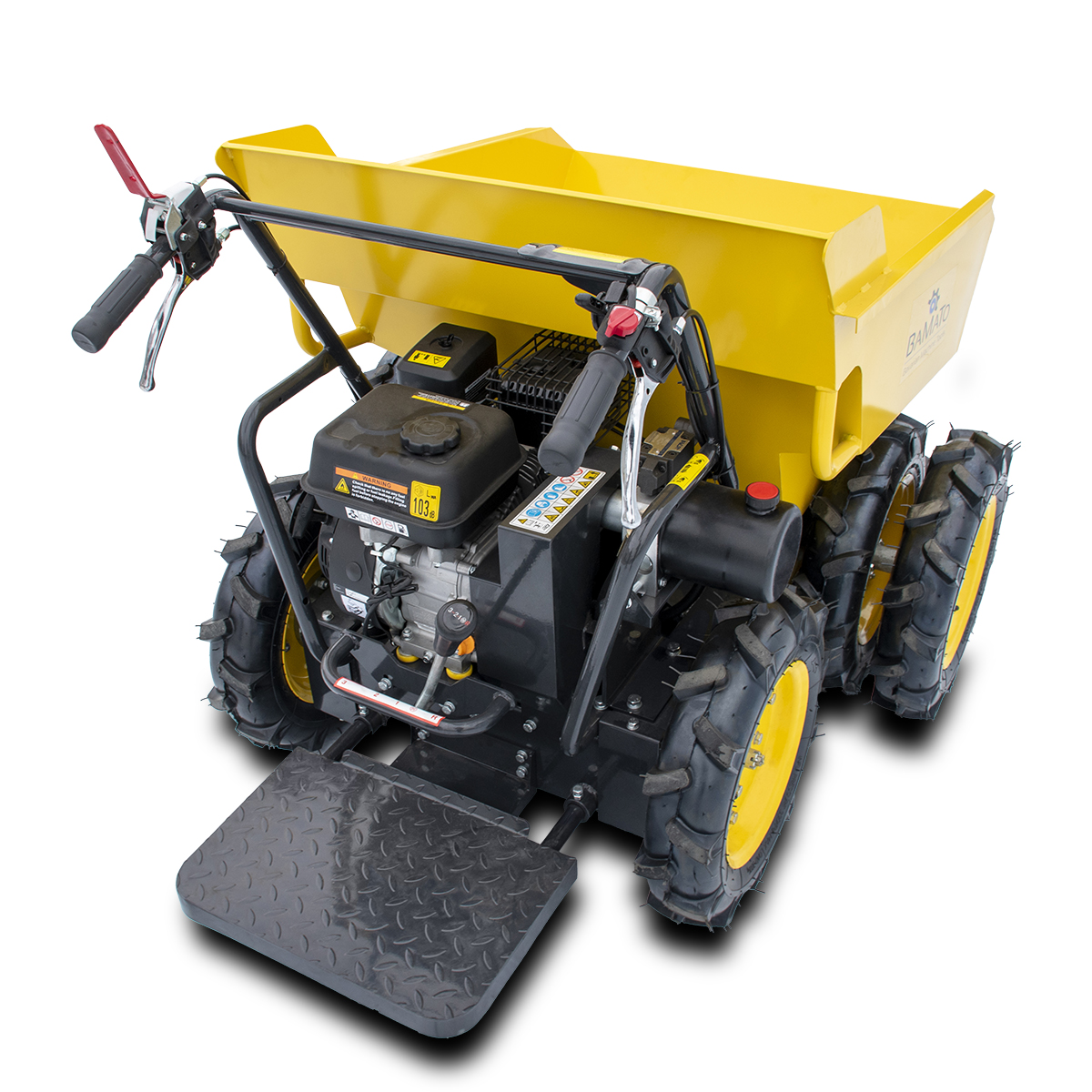 Integrovaná hydraulika sklápění umožňuje rychlé a pohodlné vykládání materiálu, zatímco praktická nášlapná plošina poskytuje bezpečný postoj. Ať už při zahradních, krajinářských nebo stavebních pracích – BAMATO Mini transportér MTR-300RH je ideálním pomocníkem pro všechny vaše přepravní potřeby.