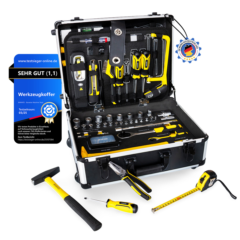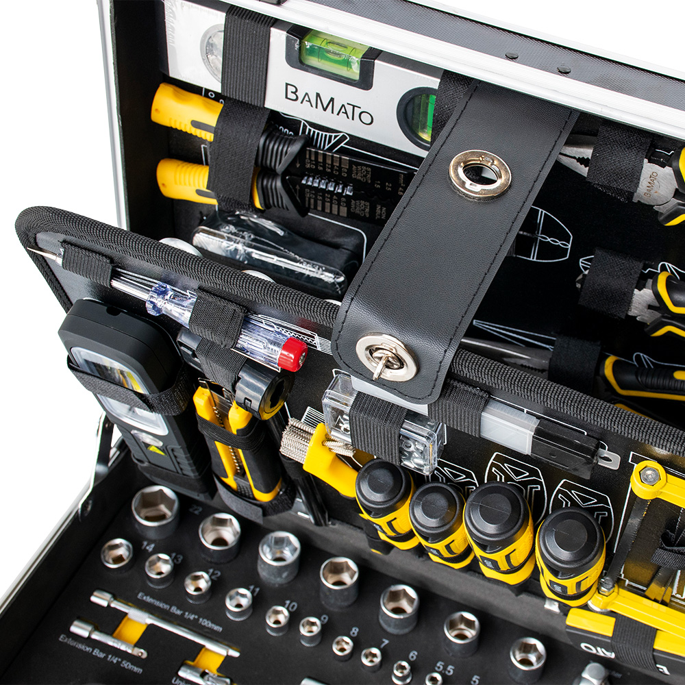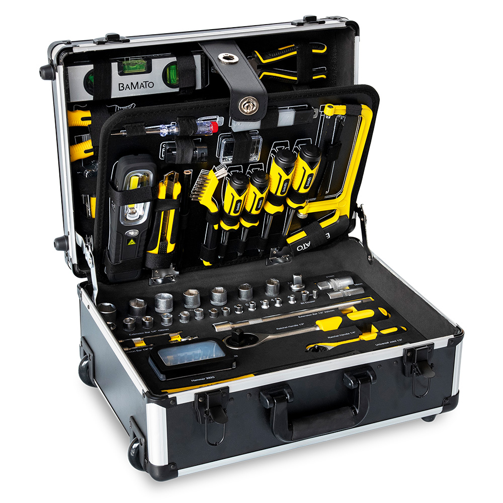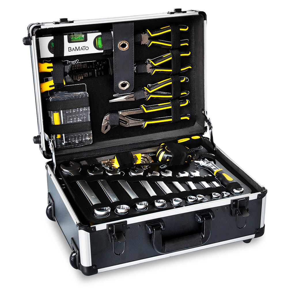 Kufr s nářadím BAMATO WORK-169 nabízí promyšlený výběr kvalitního nářadí pro domácí kutily, řemeslníky i profesionály. S 169 pečlivě vybranými díly je tato sada ideální pro opravy, montáže a různé práce v domě, garáži nebo dílně.