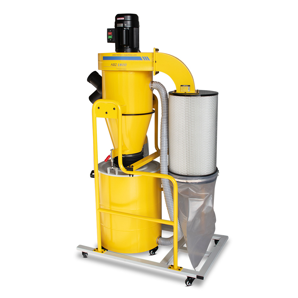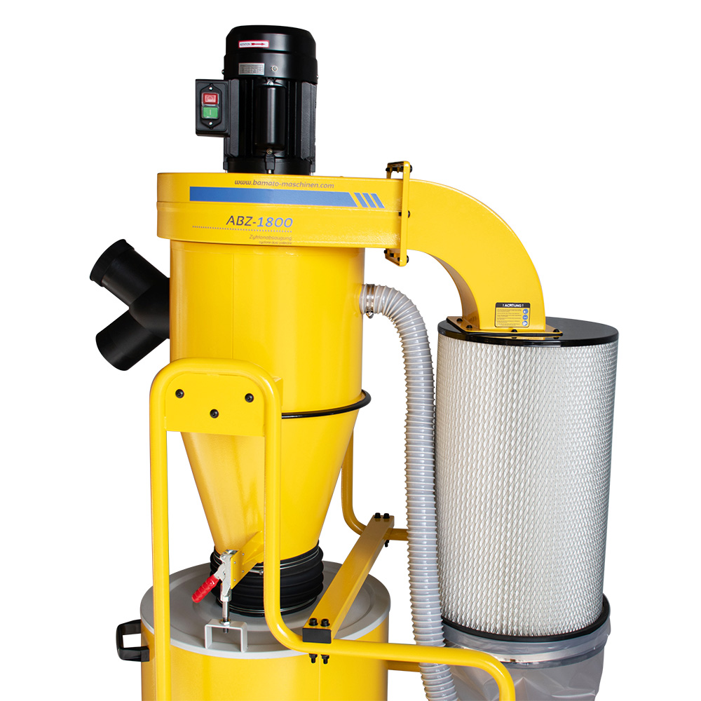 BAMATO ABZ-1800 je ideálním řešením pro všechny, kdo ve své dílně dbají na maximální efektivitu a čistotu. Tento výkonný čistovzdušný odsávací systém zaujme dvojitou filtrací třísek, která je zajištěna pomocí cyklónu a kvalitní filtrační patrony. Díky motoru s výkonem 1500 W dosahuje ABZ-1800 působivého odsávacího výkonu 1150 m³/h. To zvyšuje výkon vašich dřevoobráběcích strojů a zároveň zlepšuje čistotu pracovního prostředí.