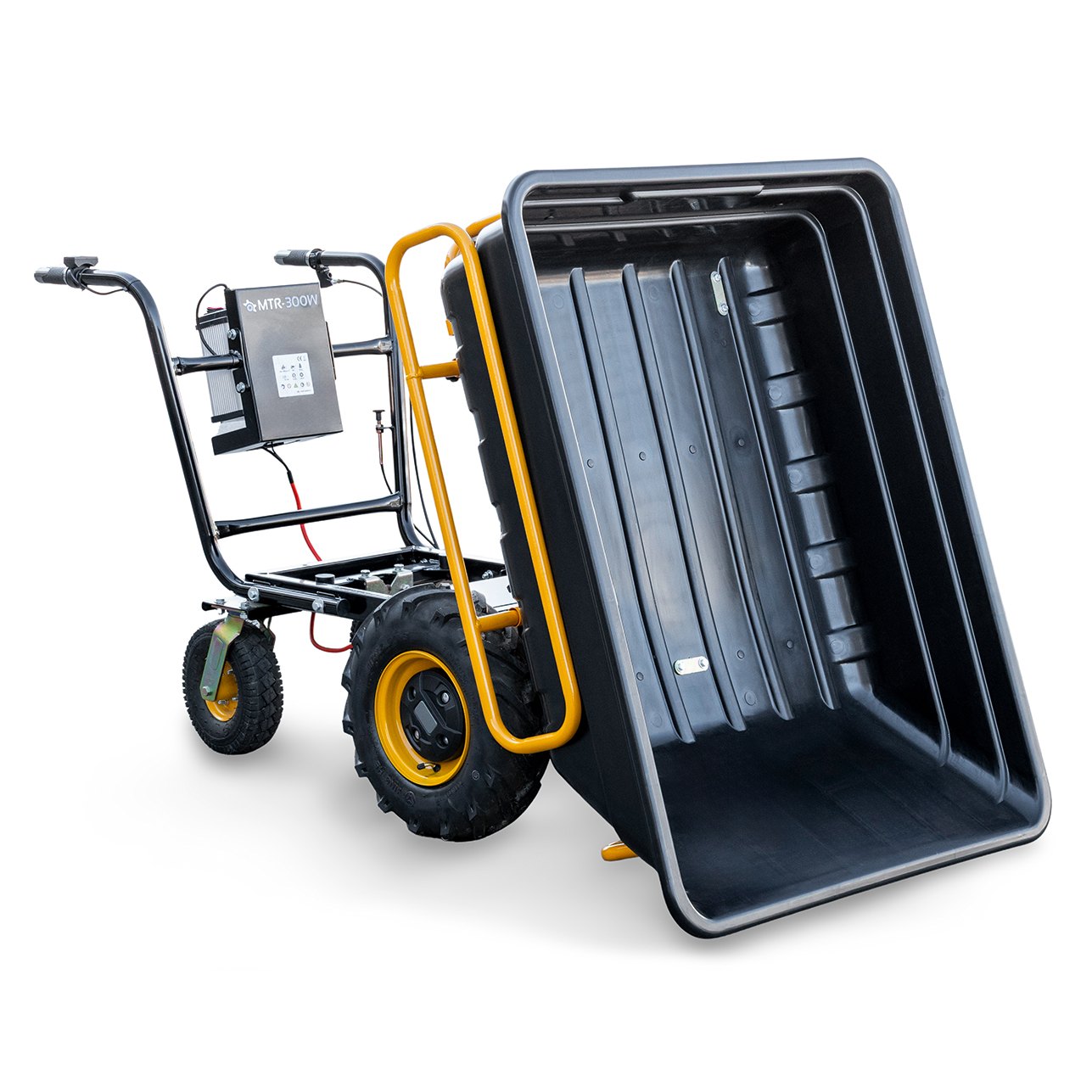 Robustní plastová korba pro elektrický kolečkový vozík BAMATO MTR-300W zaujme nízkou hmotností, vysokou stabilitou a velkým objemem nákladu. Ideálně se hodí k přepravě zeminy, sutě, štěrku, dřeva nebo jiných materiálů – ať už v zahradnictví, na stavbě nebo v zemědělství.