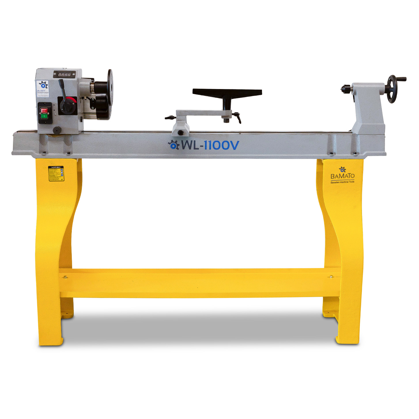 Soustruh na dřevo BAMATO WL-1100V je ideální pro profesionální použití při soustružení. Díky robustnímu litinovému loži pracuje stroj obzvlášť klidně a přesně. Koník i vřeteník jsou vyrobeny z pevné šedé litiny. Opěrka ruky o šířce 300 mm je snadno nastavitelná a umožňuje pohodlné přizpůsobení různým obrobkům. Koník je vybaven rychloupínací pákou a ručním kolem, což usnadňuje ovládání. S posuvem 50 mm a otočným hrotem je ideální pro obrábění delších kusů. Pinola koníku má průchozí otvor, který umožňuje práci s obzvlášť dlouhými obrobky.