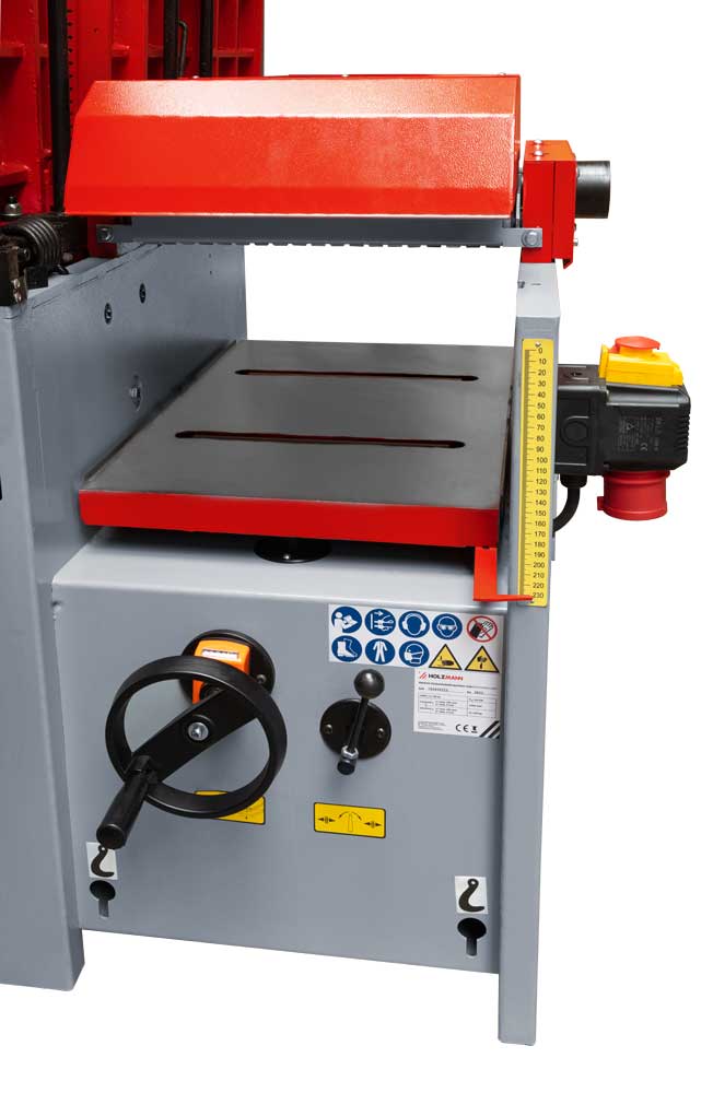 Tloušťkovací stůl se středovým sloupkovým vedením a přídavným vedením