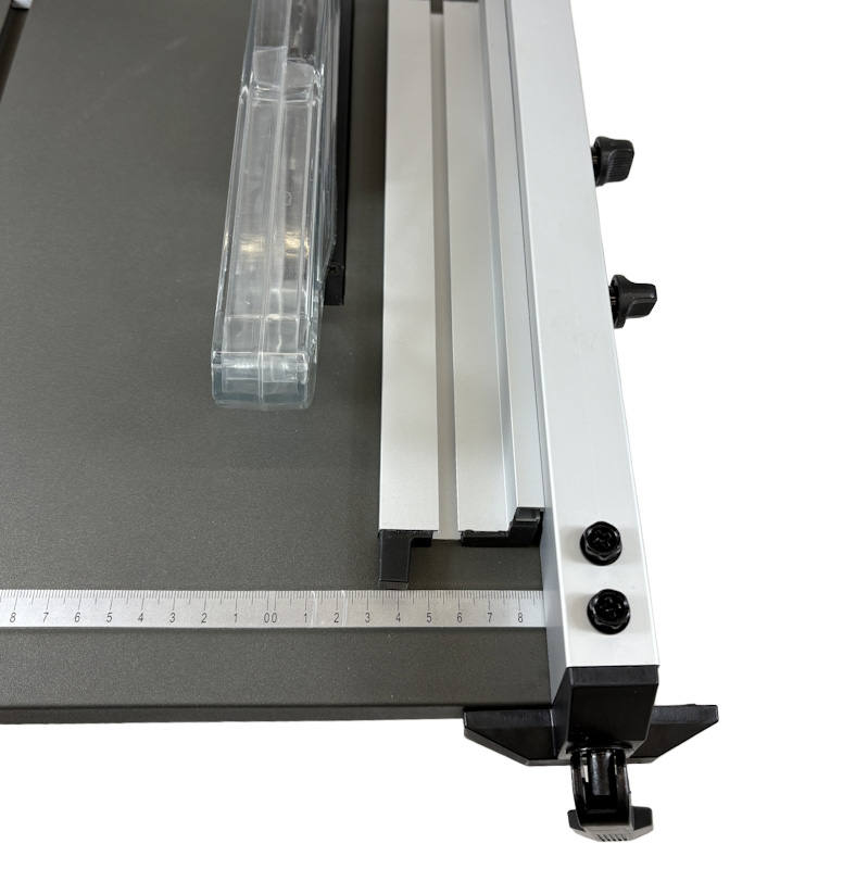 Podélný doraz s upnutím na obou stranách zaručuje vysokou přesnost řezů.